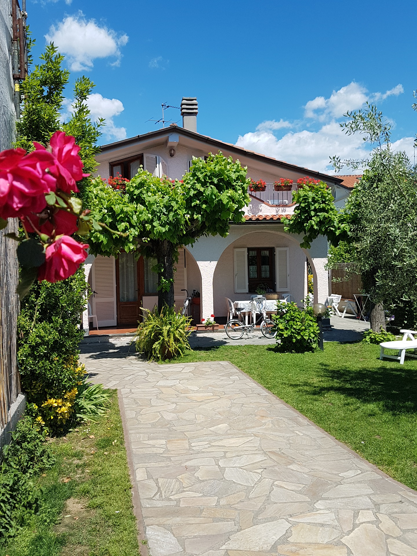 Lage: Das Ferienhaus befindet sich im beliebten Forte dei Marmi, zentral und es ist nur ca. 1.100 m vom Sandstrand entfernt gelegen. Das Ferienhaus ist ideal für Gäste, die im Urlaub auf das Auto verzichten möchten, die Lage des Ferienhauses ist so zentral, dass man zu Fuß fast alles erreichen kann. Die Gäste können zu Fuß leicht der Sandstrand, die Geschäfte, Restaurants und die Bars erreichen. Die Villa verfügt über einen schönen Garten, und das Gründstück ist eingezäunt. Auf dem Grundstück ist Platz für 2 Autos. Vor dem Haus ist eine schöne überdachte Terrasse wo man zusammen mit der Familie essen und grillen kann. Die ruhige Lage dieses Ferienhauses ist gut geeignet um zu entspannen. Der gepflegte Garten ist dafür ideal.