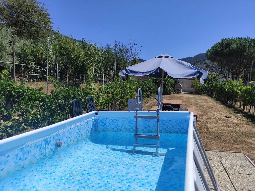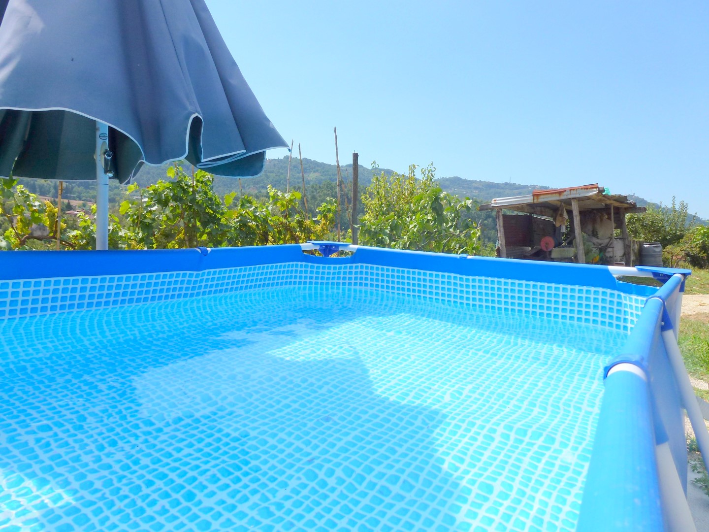Lage: Kleines Landhaus, in schöner ruhiger Lage mit Panoramablick. Das Haus ist umgeben von Olivenhainen, Obstbäumen und Weinbergen. Die sonnige Lage vergünstigt das Verbleiben, und die überdachte Terrasse mit Gartenmöbeln lädt zum gemütlichen Sitzen im Freien ein. Ein Schwimmbwcken (4m x 3m x 0,5m) steht den Gästen zur Verfügung, siehe Foto.Das große Grünstück ist über einen privaten Weg erreichbar und mit einer elektrischen Schranke ausgestattet. Parkplätze am Haus. Heizung und Grill vorhanden.