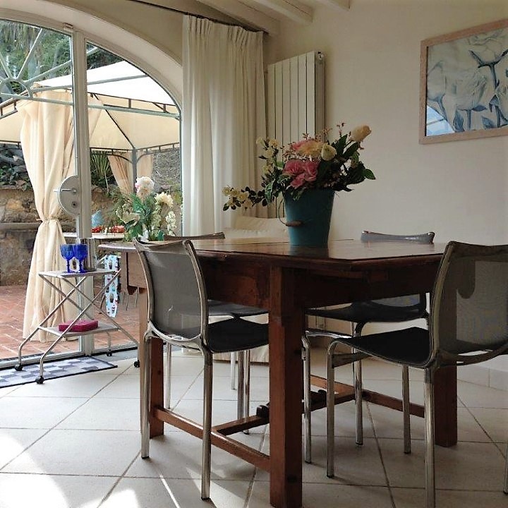 Ausstattung: 5-Zimmer-Villa 130 m2, komfortabel, geschmackvoll und stilvoll eingerichtet: Elegantes Esszimmer mit Ausgang zur Veranda. Sehr schönes Wohnzimmer mit offenem Kamin, WLan, TV und DVD. 1 Doppelzimmer mit 1 franz. Bett. und eigenes Bad/Dusche/WC.